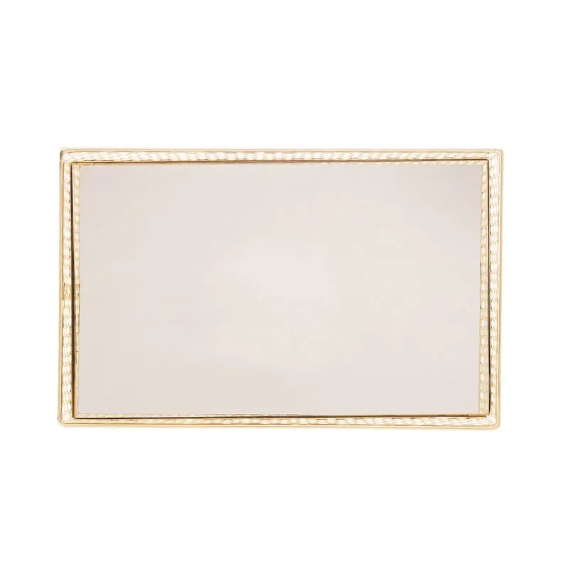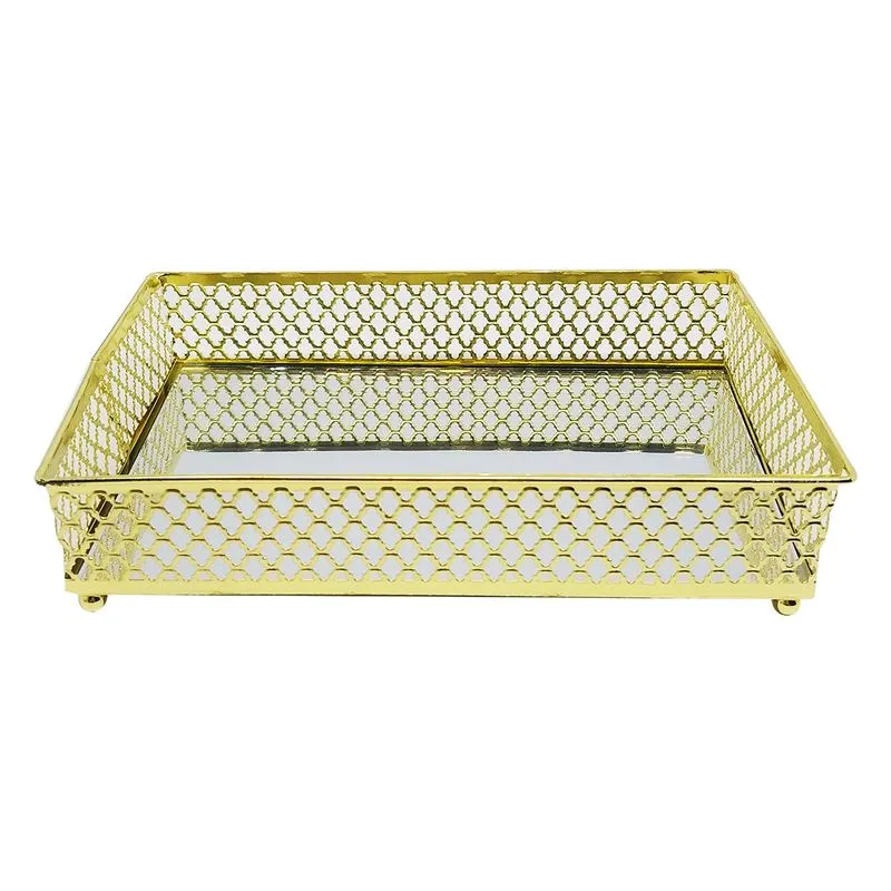 Bandeja de Metal com Espelho Barcelona Dourada 21cm x 13cm x 5cm | Lyor