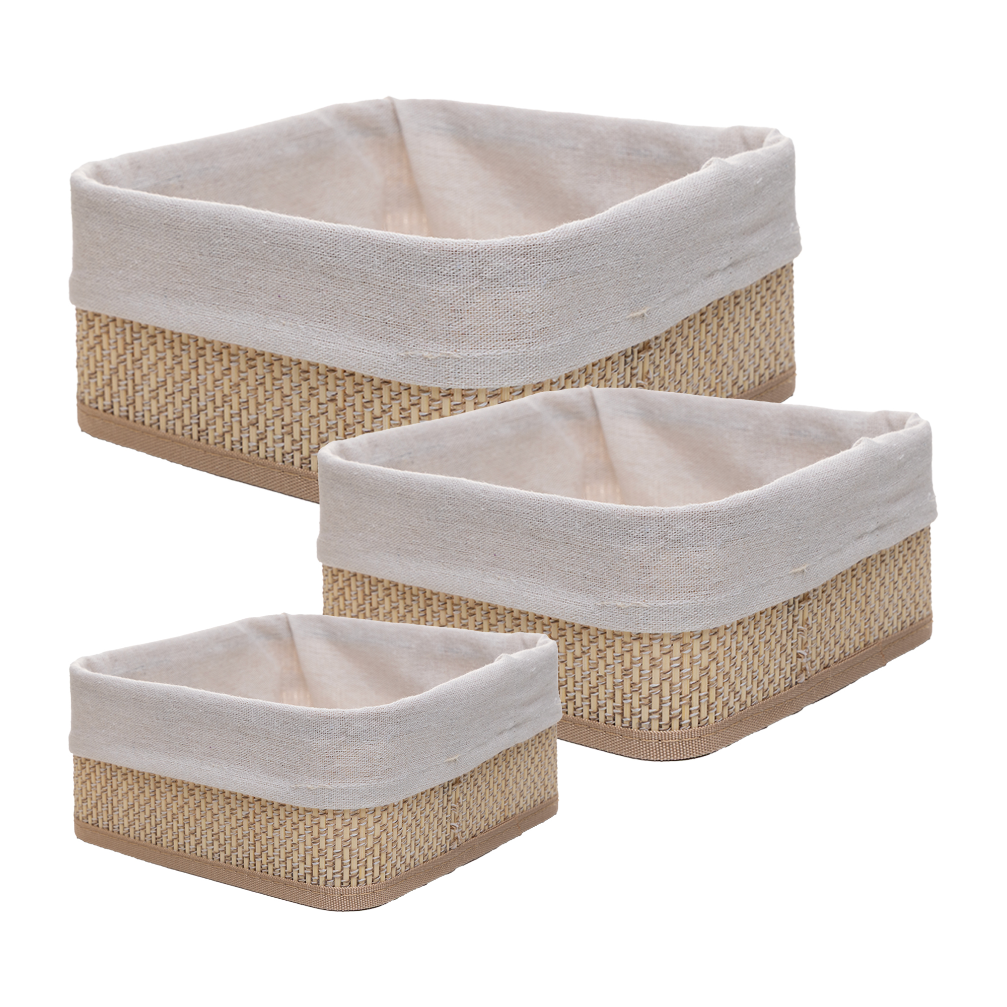 Conjunto 3 Cestas Quadradas com Forro em Tecido Cozy Bambu | Lyor