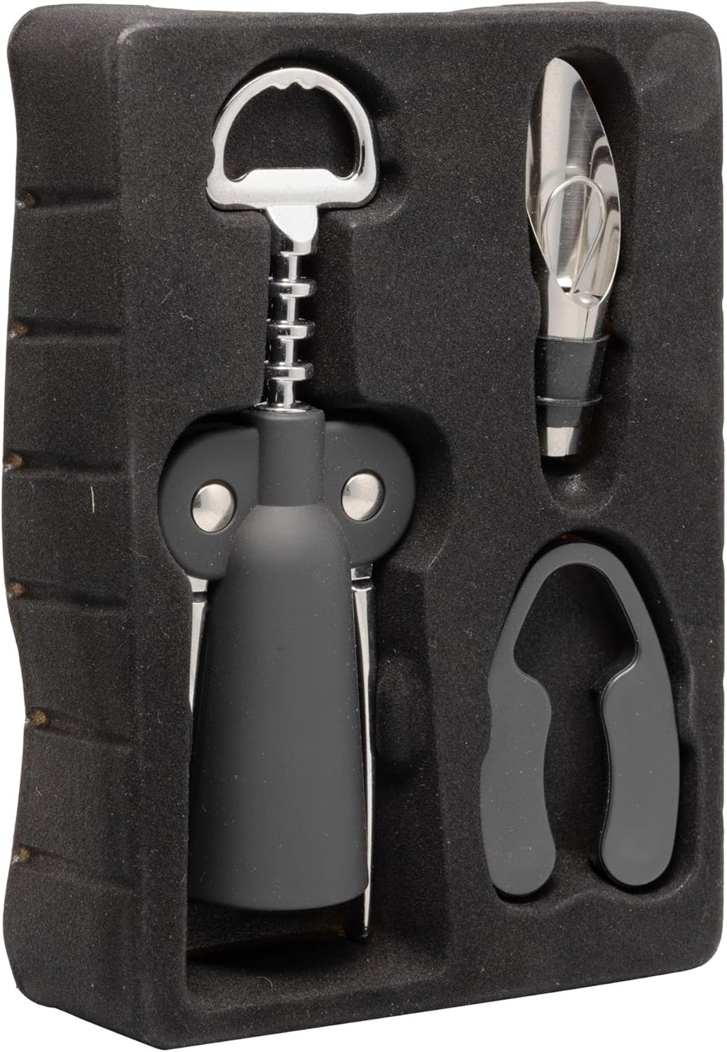 Produzido em liga de zinco e plástico de alta qualidade, o conjunto garante durabilidade e resistência, sendo perfeito para uso frequente. Compacto e funcional, é ideal para abrir e servir vinhos com facilidade, combinando com diferentes ocasiões e estilos de mesa.