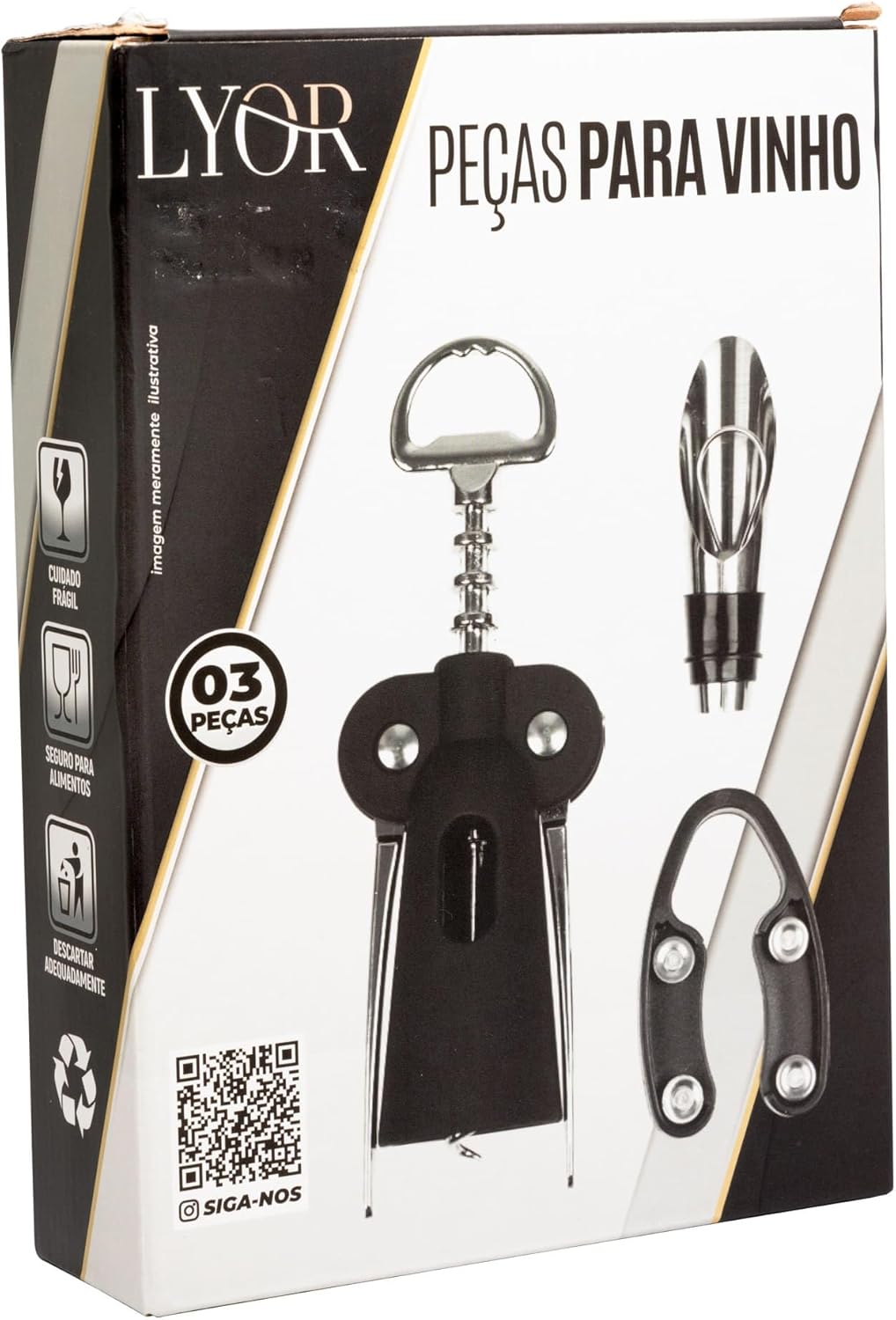 Conjunto 3 Peças para Vinho – Liga de Zinco e Plástico | Lyor