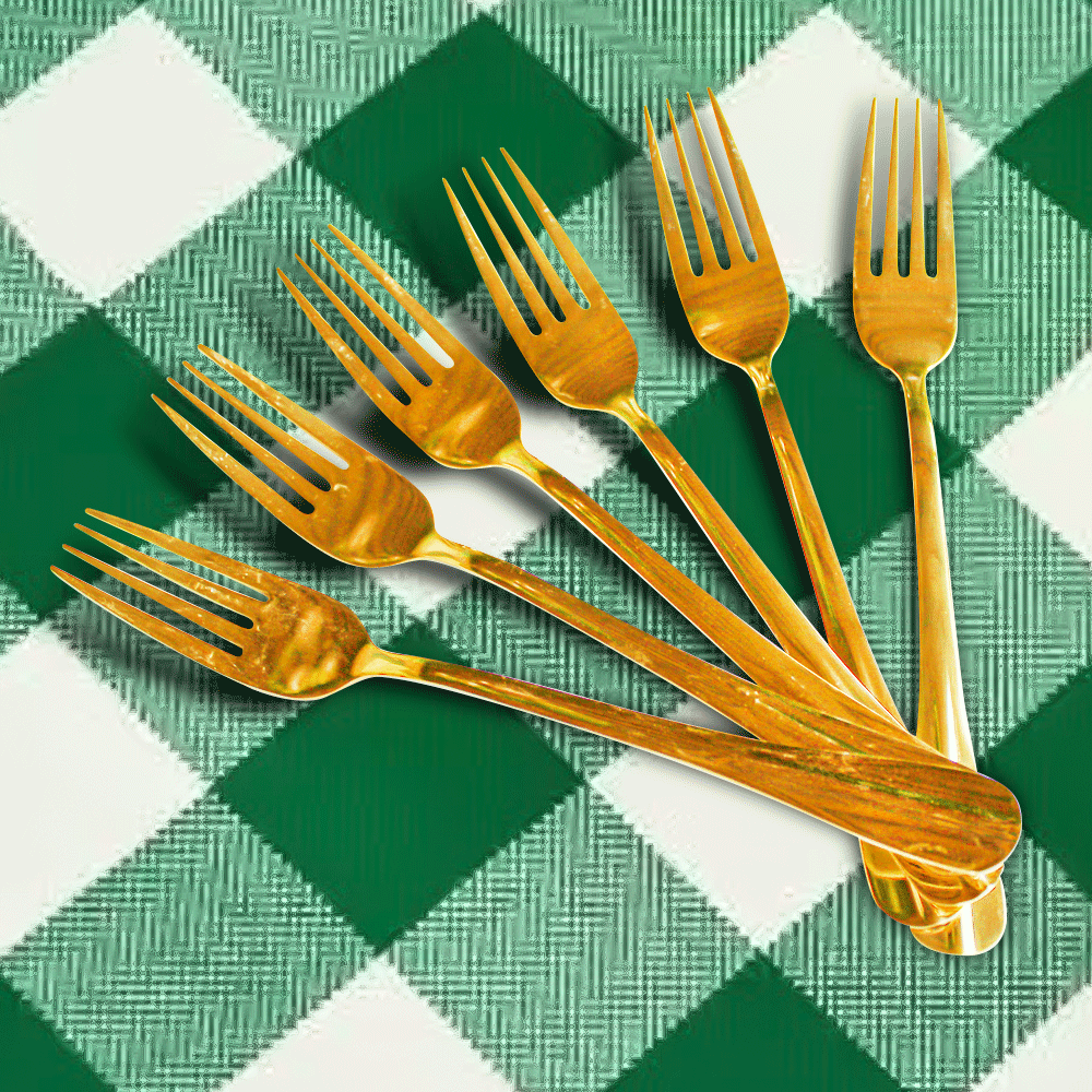 Conjunto 6 Garfos para Mesa de Aço Inox Positano Dourado – 20cm | Lyor