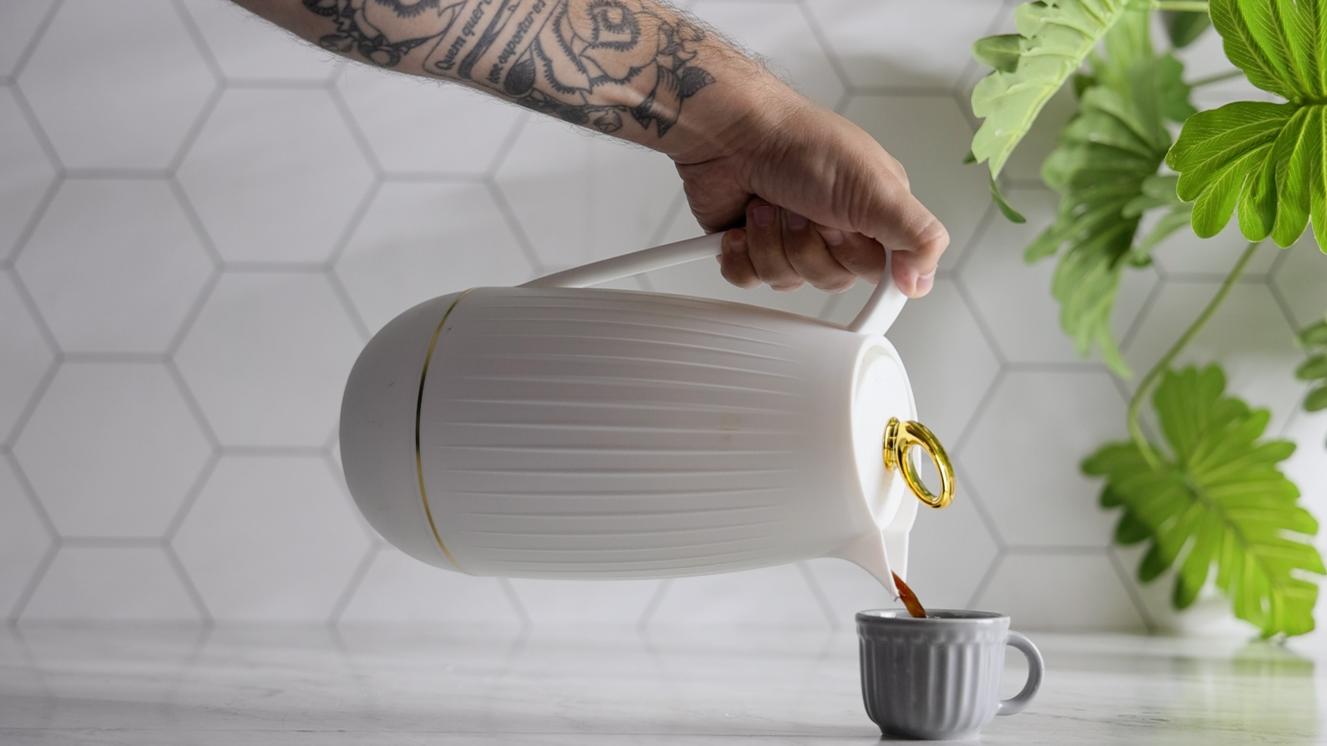 Seu formato arredondado e delicado inspira leveza e elegância, tornando-a perfeita para compor mesas de café, reuniões ou momentos de pausa com estilo. A tampa com sistema de vedação eficiente garante conservação da temperatura e evita vazamentos, enquanto o bico dosador facilita o serviço com precisão e segurança.