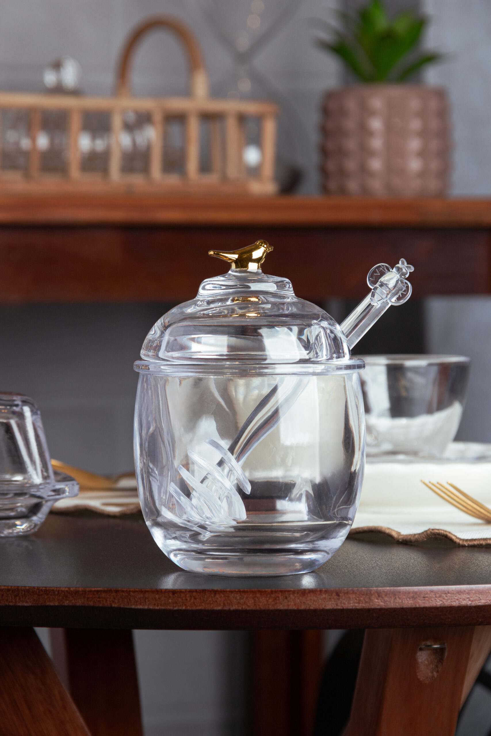 Ideal para armazenar e servir mel, a meleira é uma peça funcional e decorativa que valoriza qualquer ocasião.