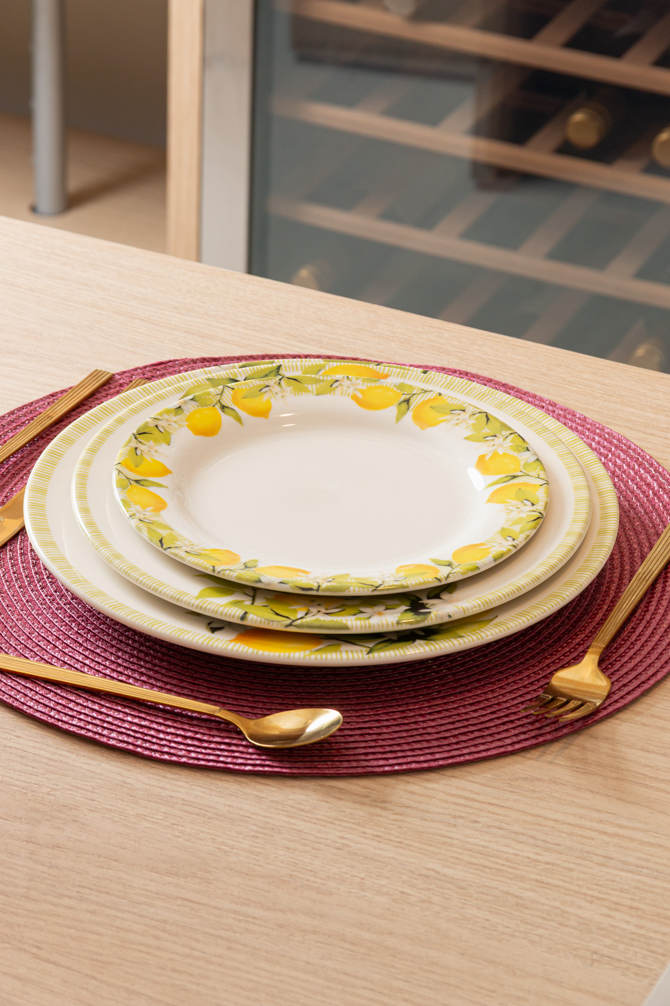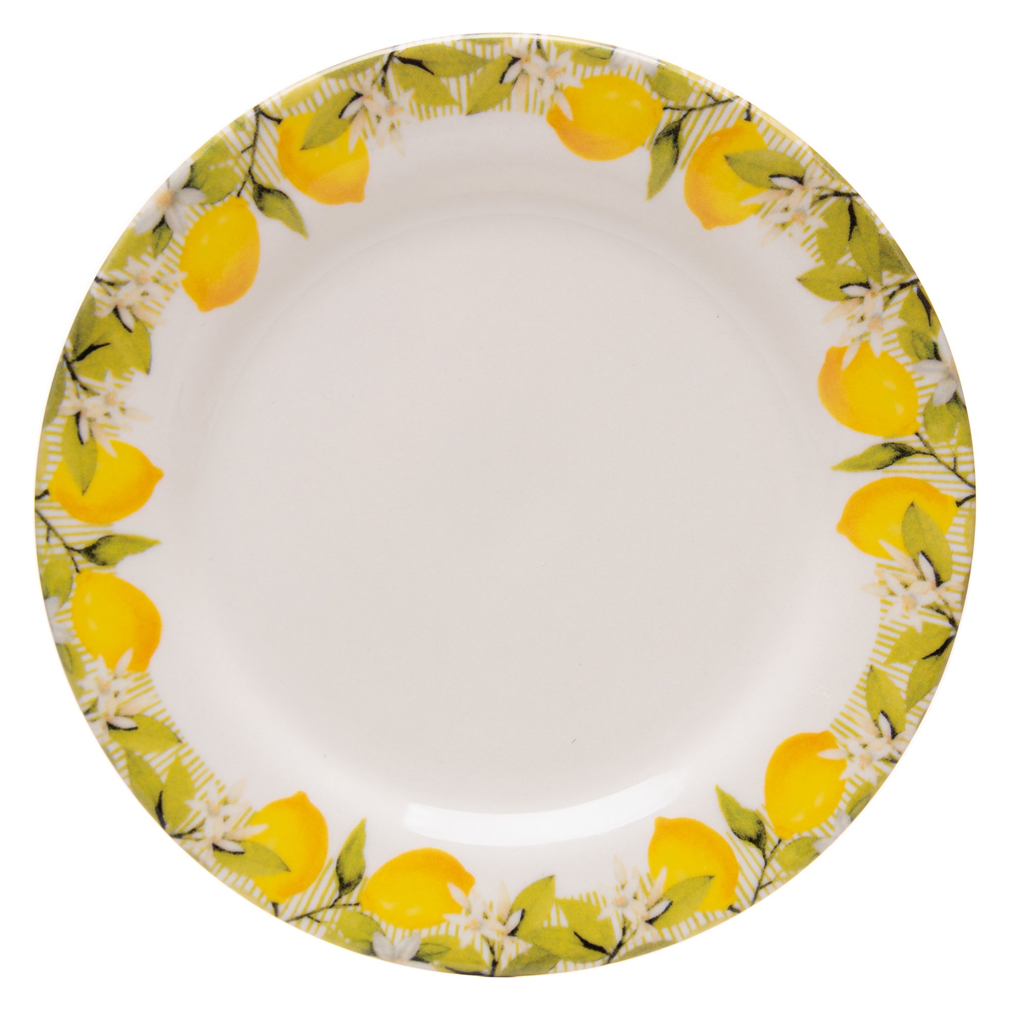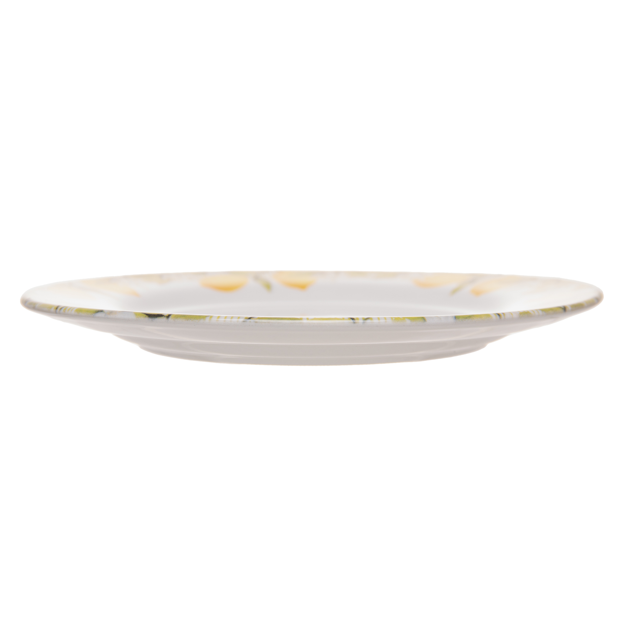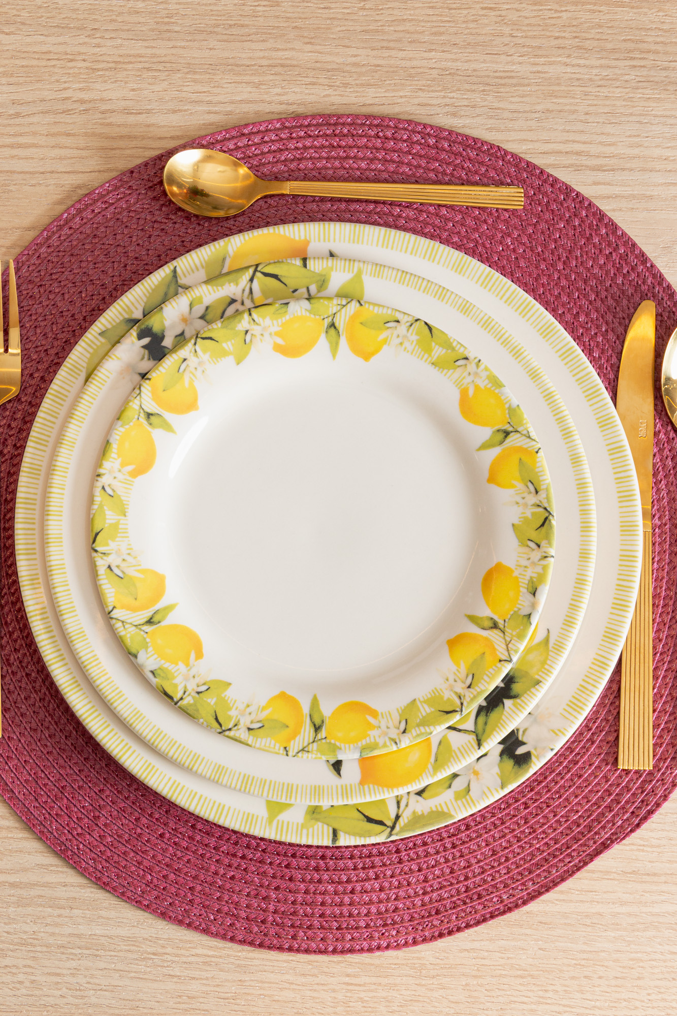 Com 20 cm de diâmetro, é perfeito para servir bolos, tortas, doces e frutas com praticidade e estilo. Seu design é decorado com limões sicilianos, trazendo um toque vibrante e mediterrâneo à mesa. A estampa alegre contrasta harmoniosamente com o fundo branco, criando uma composição leve, sofisticada e convidativa.