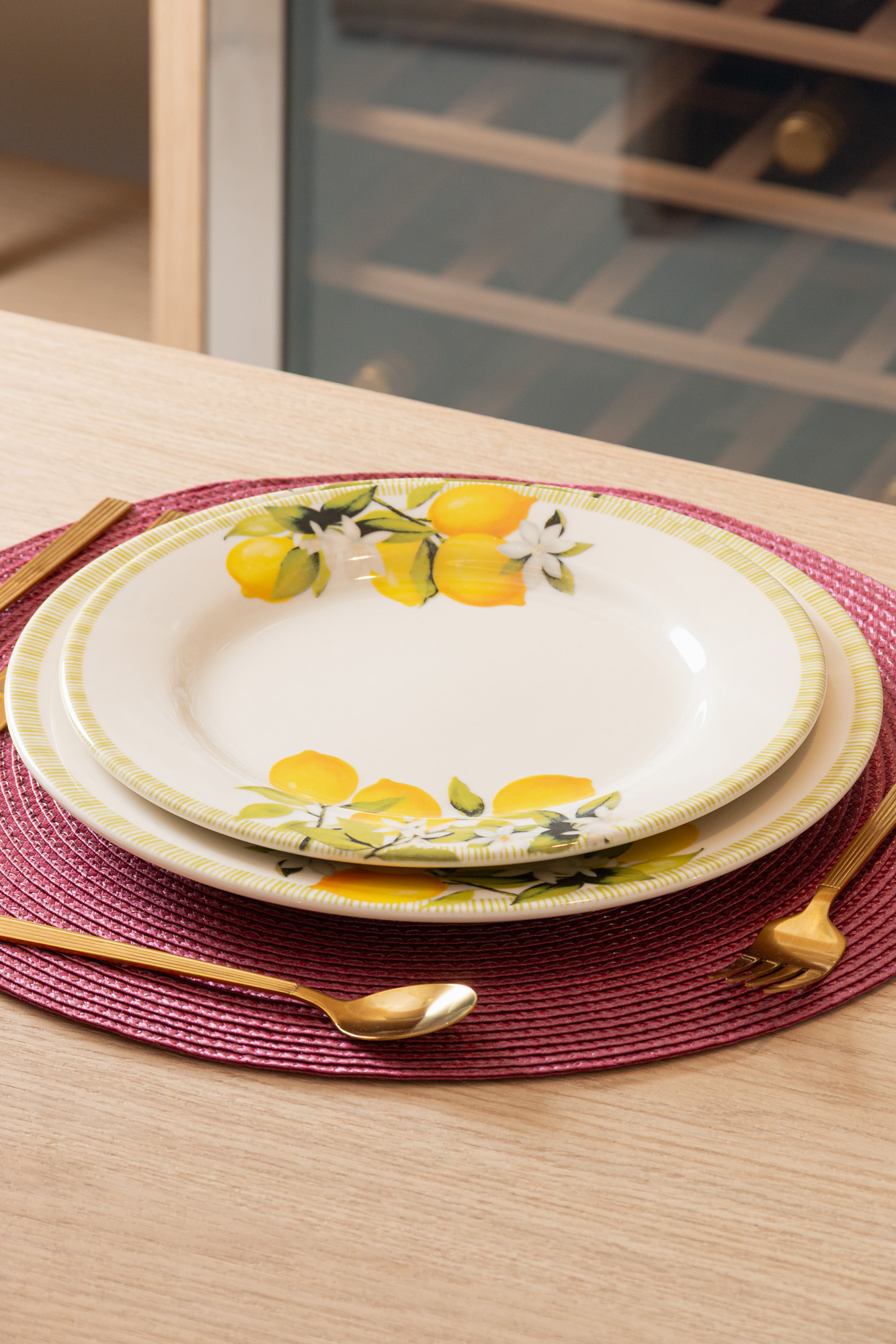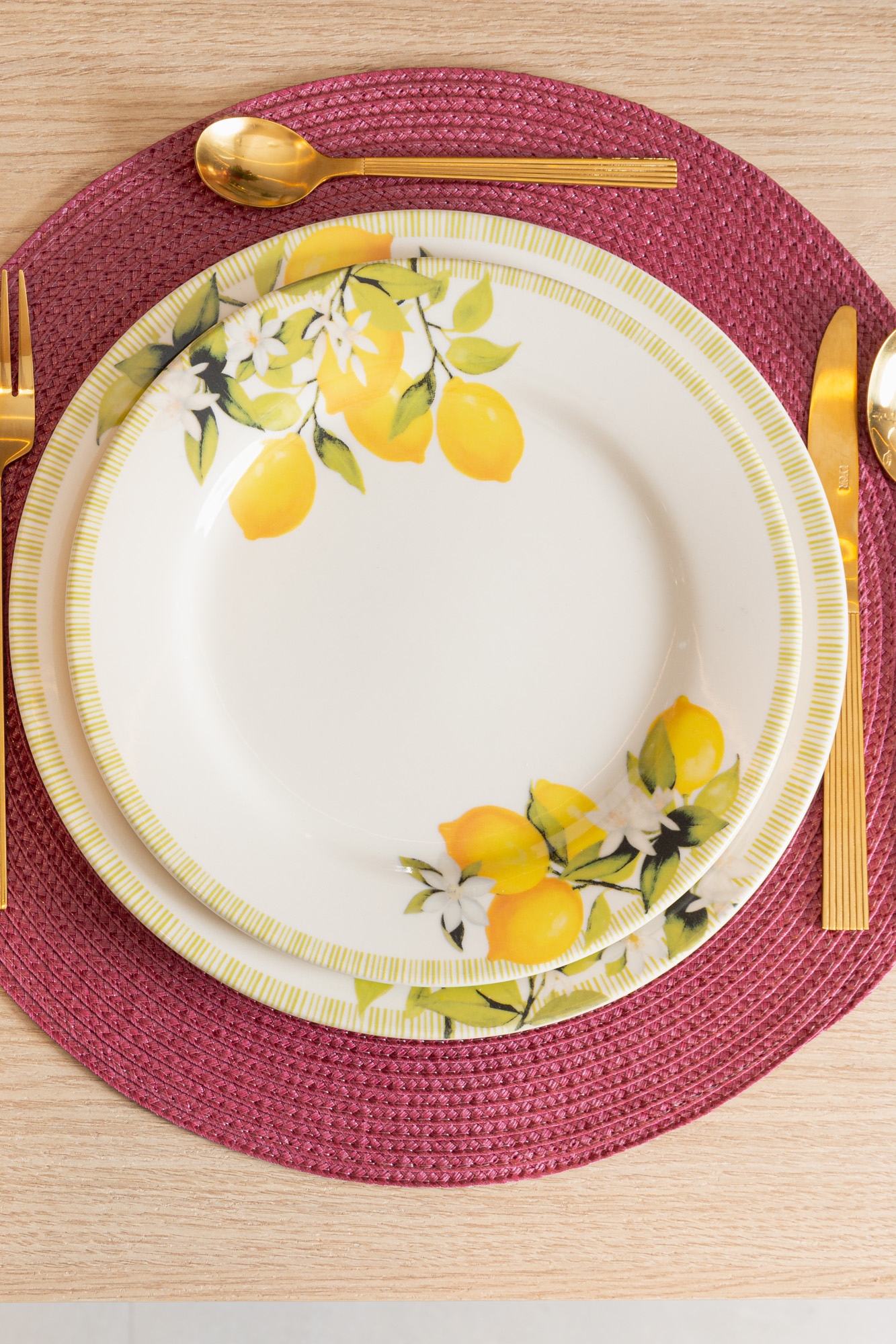 - Cor: Branco decorado com limões sicilianos