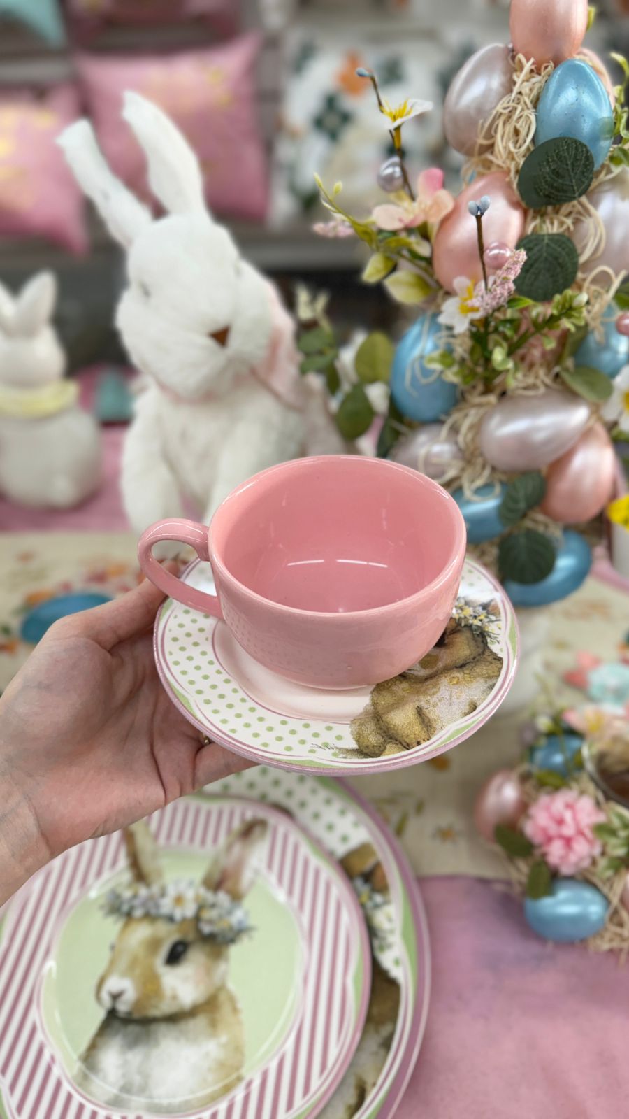 Romântica e delicada, esta xícara traz toda a suavidade e o encanto da Páscoa para os seus momentos de pausa. Com a xícara em tom rosa suave e o pires com a charmosa estampa da Coelha Agnes, a peça transmite aconchego, feminilidade e elegância, perfeita para compor mesas postas encantadoras.